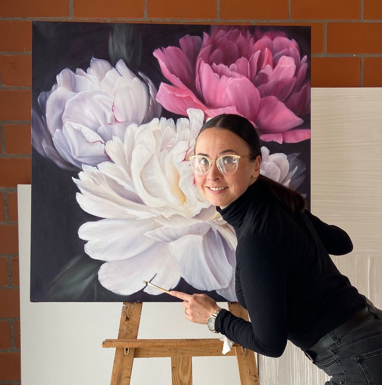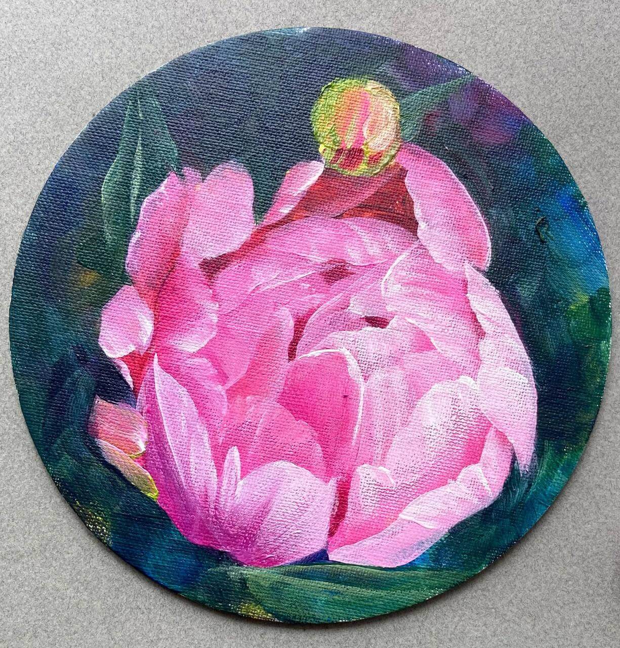 - Учимся смешивать цвета для получения нужного оттенка зелени и лепестков пиона.