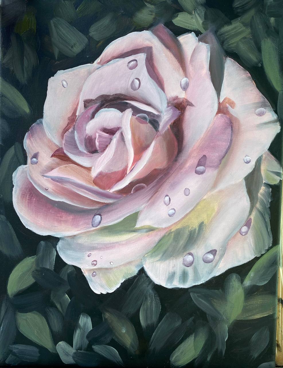 - Овладеете техниками нанесения мазков для передачи текстуры лепестков и утренних капель росы.